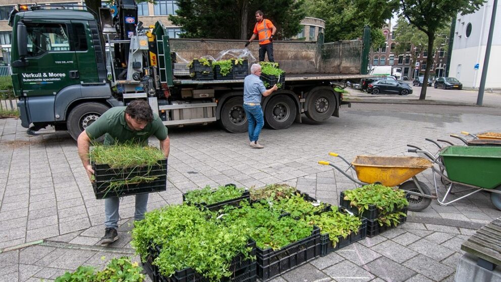 For example, they removed more than 100 square meters of tiles from the Academieplein, where the educational institute building is located, and exchanged them for hundreds of plants and flowers. A total of 1,132 paving stones were removed to make way for greenery.