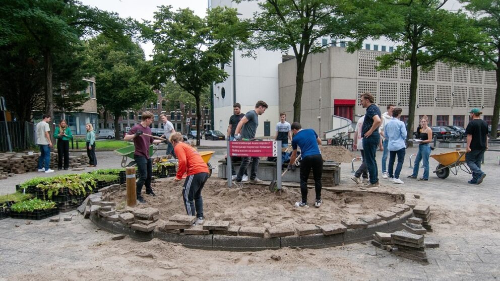 During their introduction week first-year students of the Institute for the Built Environment, part of Rotterdam University of Applied Sciences, took up the challenge to make the university's environment greener, more climate-proof and more attractive for neighbors, students and employees.