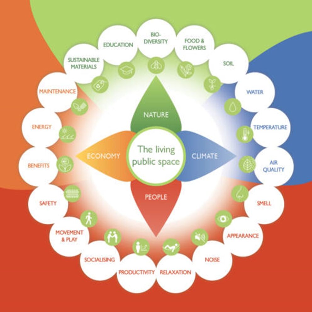 The main purpose of this manual is to explain the structure of the concept of Living Public Space. It is a tool to organize the multitude of available (scientific) information and matching examples. This allows you to make your own translation into practice.